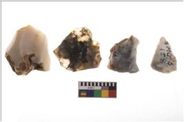 | Description / विवरण | Four worked flakes with sharp edges and few are tapering at one end. |
