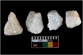 | Description / विवरण | There are n-4 of intact utilized flakes made up of Quartz. Some of them have bulge of percussion and some are flat flakes. |