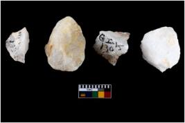 | Description / विवरण | A specimen of a fluted core having several broad fluted marks indicating the detached blades from it. |
