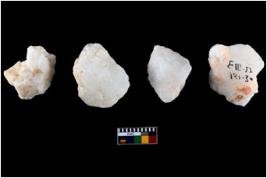 | Description / विवरण | A specimen of a fluted core having several broad fluted marks indicating the detached blades from it. |