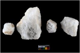 | Description / विवरण | A specimen of a fluted core having several broad fluted marks indicating the detached blades from it. |