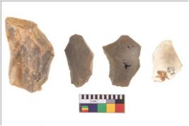 | Description / विवरण | Four flakes; most of them are tapering at one end with few having sharp edges. |