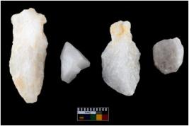 | Description / विवरण | A specimen of a fluted core having several broad fluted marks indicating the detached blades from it. |
