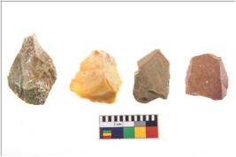| Description / विवरण | Four flakes; most of them are tapering at one end with few having sharp edges. |