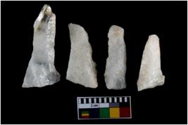 | Description / विवरण | There are n-4 of intact utilized flakes made up of Quartz. Some of them have bulge of percussion and some are flat flakes. |