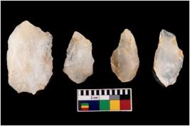| Description / विवरण | Four flakes; most of them are tapering at one end with few having sharp edges. |