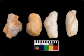 | Description / विवरण | Four flakes; most of them are tapering at one end with few having sharp edges. |