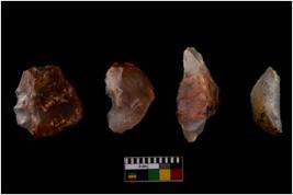 | Description / विवरण | Four worked flakes with sharp edges and few are tapering at one end. |