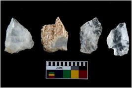 | Description / विवरण | There are n-4 of intact utilized flakes made up of Quartz. Some of them have bulge of percussion and some are flat flakes. |