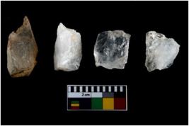| Description / विवरण | There are n-4 of intact utilized flakes made up of Quartz. Some of them have bulge of percussion and some are flat flakes. |