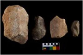 | Description / विवरण | Specimen of cores with visible weathered cortex and several broad fluted marks. Almost all are irregular in shape and size. |