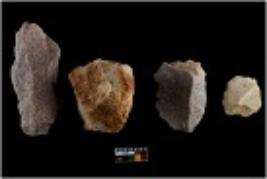 | Description / विवरण | Specimen of cores with visible weathered cortex and several broad fluted marks. Almost all are irregular in shape and size. |