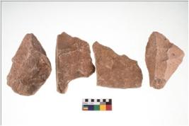 | Description / विवरण | Four flakes; most of them are tapering at one end with few having sharp edges. |