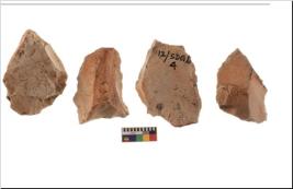 | Description / विवरण | Four worked flakes with sharp edges and few are tapering at one end. |