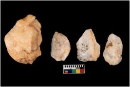| Description / विवरण | Four cores; showing impressions of removal of blades. |