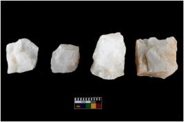 | Description / विवरण | A specimen of a fluted core having several broad fluted marks indicating the detached blades from it. |