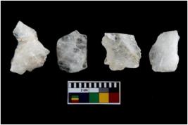 | Description / विवरण | There are n-4 of intact utilized flakes made up of Quartz. Some of them have bulge of percussion and some are flat flakes. |