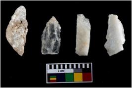 | Description / विवरण | There are n-4 of intact utilized flakes made up of Quartz. Some of them have bulge of percussion and some are flat flakes. |