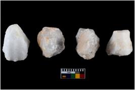 | Description / विवरण | A specimen of a fluted Core with several broad fluted marks indicating the detached blades from it. |