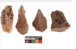 | Description / विवरण | Four worked flakes with sharp edges and few are tapering at one end. |
