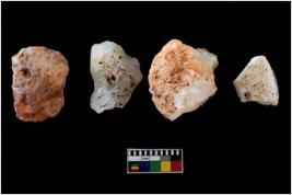 | Description / विवरण | There are n-4 of intact cores made up of Chalcedony.There are multidirectional irregular dominant scar pattern on both dorsal and ventral face of the cores. |