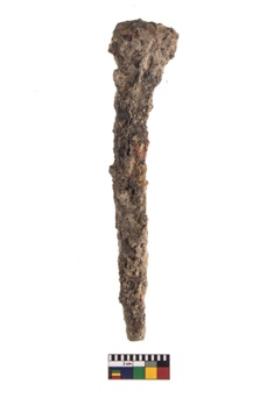 | Description / विवरण | A complete specimen of a nail with rounded head head , rectangular body and pointed end. |