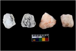 | Description / विवरण | A specimen of a fluted Core with several broad fluted marks indicating the detached blades from it. |