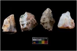 | Description / विवरण | There are n-4 of intact cores. Out of them 2 are made up Chalcedony and 2 are made up of Chert.There are multidirectional irregular dominant scar pattern on both dorsal and ventral face of the cores. |