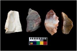 | Description / विवरण | There are n-4 of intact utilized flakes made up of Chert. Some of them have bulge of percussion, some are flat flakes and few are retouched. |