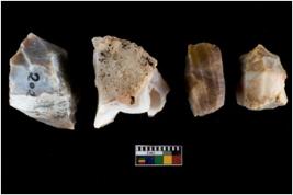 | Description / विवरण | There are n-4 of intact cores. Out of them 2 are made up Chalcedony and 2 are made up of Chert.There are multidirectional irregular dominant scar pattern on both dorsal and ventral face of the cores. |