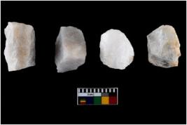 | Description / विवरण | A specimen of a fluted Core with several broad fluted marks indicating the detached blades from it. |
