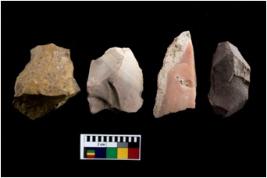 | Description / विवरण | There are n-4 of intact utilized flakes made up of Chert. Some of them have bulge of percussion, some are flat flakes and few are retouched. |