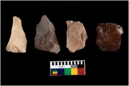 | Description / विवरण | There are n-4 of intact utilized flakes made up of Chert. Some of them have bulge of percussion, some are flat flakes and few are retouched. |