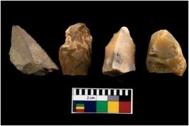 | Description / विवरण | There are n-4 of intact utilized flakes made up of Chert. Some of them have bulge of percussion, some are flat flakes and few are retouched. |
