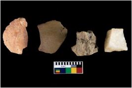 | Description / विवरण | There are n-4 of intact utilized flakes made up of Chert. Some of them have bulge of percussion, some are flat flakes and few are retouched. |