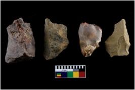 | Description / विवरण | There are n-4 of intact utilized flakes made up of Chert. Some of them have bulge of percussion, some are flat flakes and few are retouched. |