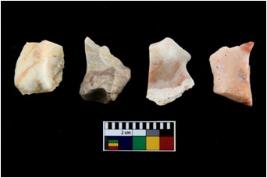 | Description / विवरण | There are n-4 of intact utilized flakes made up of Chert. Some of them have bulge of percussion, some are flat flakes and few are retouched. |