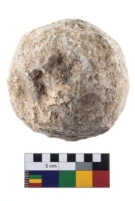 | Description / विवरण | A partially broken specimen of roughly round shaped hammer stone with battered periphery along with the circumference. |