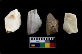 | Description / विवरण | There are n-4 of intact utilized flakes made up of Chert. Some of them have bulge of percussion, some are flat flakes and few are retouched. |