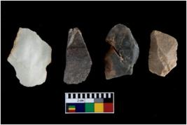 | Description / विवरण | There are n-4 of intact utilized flakes made up of Chert. Some of them have bulge of percussion, some are flat flakes and few are retouched. |
