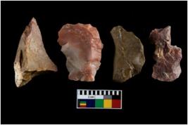 | Description / विवरण | There are n-4 of intact utilized flakes made up of Chert. Some of them have bulge of percussion, some are flat flakes and few are retouched. |