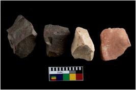 | Description / विवरण | There are n-4 of intact utilized flakes made up of Chert. Some of them have bulge of percussion, some are flat flakes and few are retouched. |