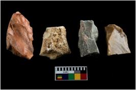 | Description / विवरण | There are n-4 of intact utilized flakes made up of Chert. Some of them have bulge of percussion, some are flat flakes and few are retouched. |