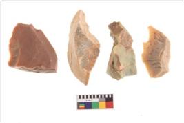 | Description / विवरण | Four flakes; most of them are tapering at one end with few having sharp edges. |
