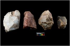 | Description / विवरण | There are n-4 of intact flake cores. Out of them 1 is made up Chalcedony and 3 are made up of Chert.There are multidirectional irregular dominant scar pattern on both dorsal and ventral face of the cores. |