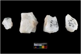| Description / विवरण | A specimen of a fluted core having very few fluted marks before removing of blades form it. It is roughly rounded in shape and white in colour. |