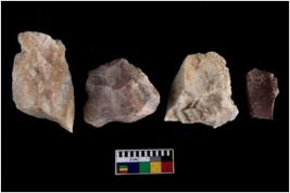 | Description / विवरण | There are n-4 of intact utilized flakes made up of Chert. Some of them have bulge of percussion, some are flat flakes and few are retouched. |