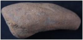 | Description / विवरण | Fragment of an animal figurine has scratches on its surface, it is roller like figure which narrows towards downwards and it is broken on upper side. |