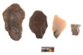 | Description / विवरण | Specimen of cores with visible weathered cortex and few broad fluted marks. Almost all are irregular in shape and size.Three are tapering at one end. |