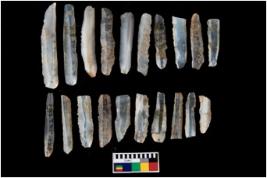 | Description / विवरण | There are n-20 of intact microliths. All are made up of Chalcedony. They show variation in size and shape. Some of them are blunted back blades, crescent and truncated blades. All blades have retouched sides. |